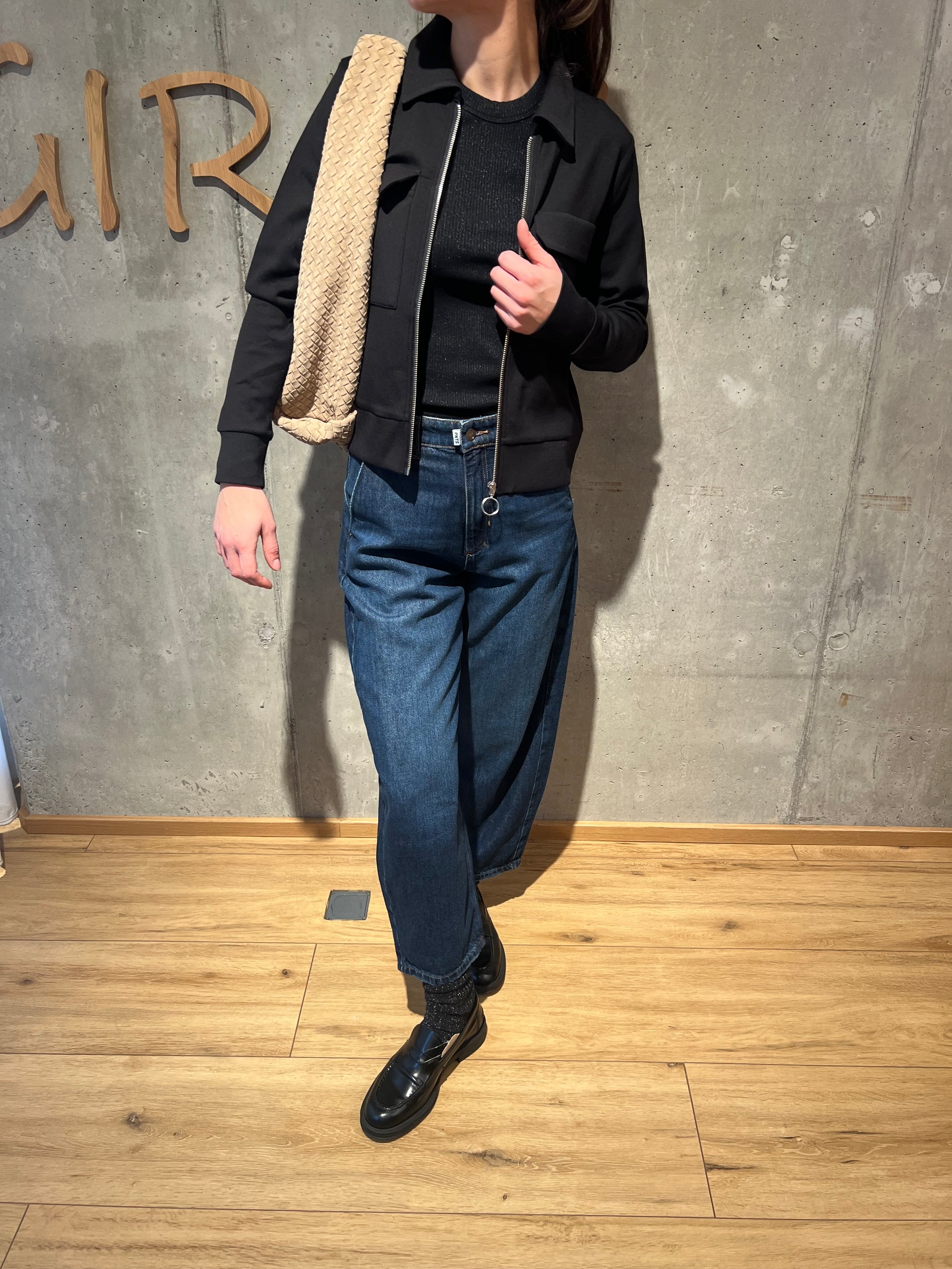 Schwarzer Stoffcardigan mit Kragen und Reißverschluss