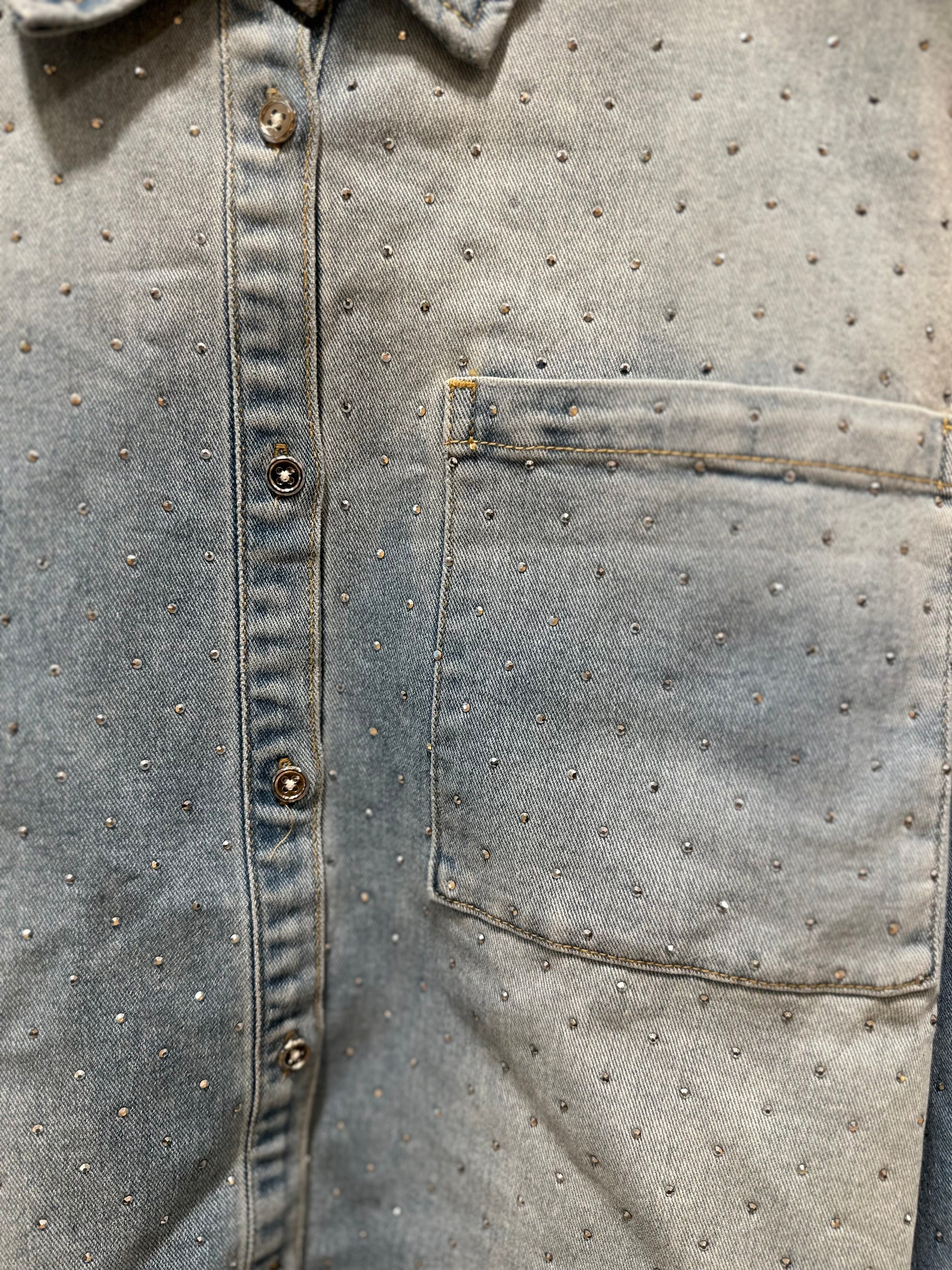Lässiges Jeansshirt mit aufgesetzten Glitzersteinen